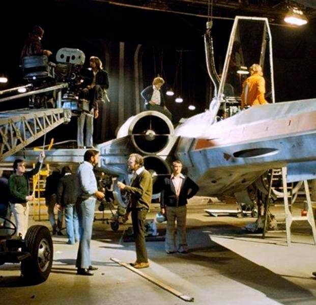 Shepperton Studios facility, as the technician organised the use of a huge building crane to lift it into the air as a lead-in to the all-important Battle of Yavin seen at the end of the film.