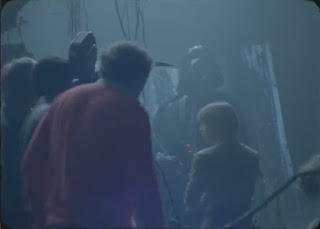In a moment played with supernatural fury, Luke, clearly acting in deep-centred revenge for the death of his father and Obi-Wan Kenobi, takes on the figure of Darth Vader in lightsaber combat. But all is not what it seems. In post production editing, George Lucas had the sequence slowed down to give it further eerie atmosphere (whilst composer John Williams would also later bring-in a rare hint of electronic music to add to the strangeness of the conflict), having liked a similar duelling sequence heightened by that technique in his friend Roger Christian's sword and sorcery short film, Black Angel, a well received first production from the former set decorator that would show alongside Empire in key British cinemas during its original release.